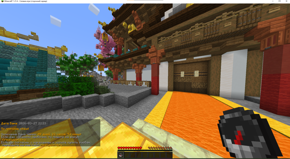 6. Ваш ник:mynamy10 Дата нарушения: 2026-03-27 03:32 Суть нарушения: Читы Номер грифа и режим гриферского выживания: 1 Доказательства о нарушении (фото/видео): Дополнительный комментарий: Бегал по своему дому и меня забанили