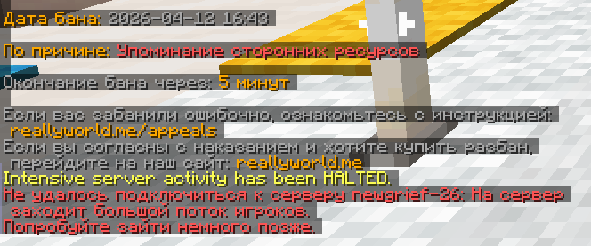 4. Ваш ник:Akz Ник нарушителя:Не помню... Дата нарушения:2026-04-12 16:43 Суть нарушения:Мут 15д+ На каком гриферском режиме было нарушение (MEGA-GRIEF/GRIEF-1.16) :26 Доказательства о нарушении (фото/видео): Дополнительный комментарий:Тип обманул сказал даст топовый сет пегаса я же конечно поверил он сказал скажи мне любой чит я сказал зачем он меня уговорил я умер сет пропал и мут на 15д помогите Важно: