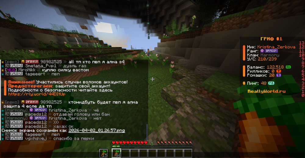 Ваш ник: Kristina_Zerkova Ник нарушителя: paceds12 Дата нарушения: 02.04.2026 Суть нарушения: 4.11.1 Угрозы баном На каком гриферском режиме было нарушение (MEGA-GRIEF/GRIEF-1.16) : Гриф #1 Доказательства о нарушении (фото/видео): фото ниже