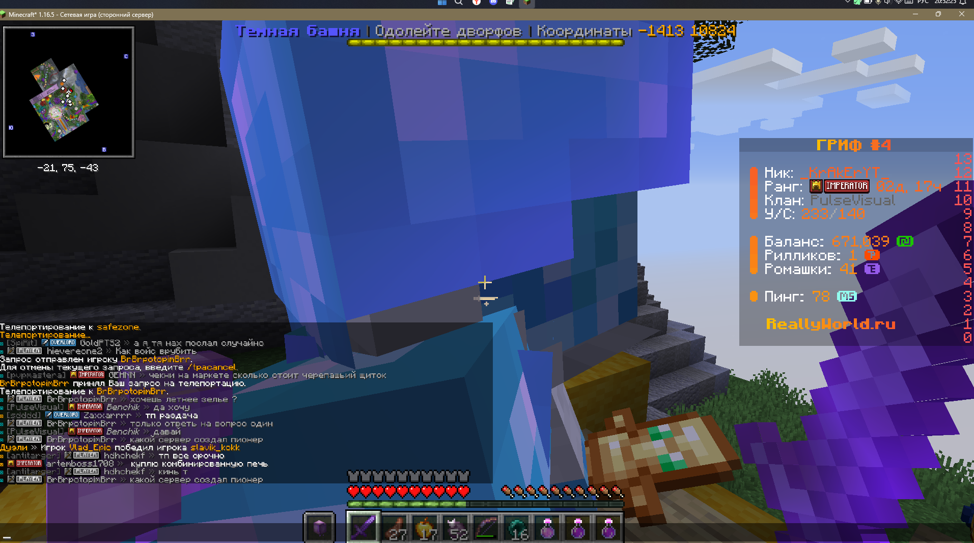 4. Ваш ник: _KrAkErYT_ Ник нарушителя: ReadlySQprime2 Дата нарушения: 20.04.2026 Суть нарушения: признал в читах На каком гриферском режиме было нарушение (MEGA-GRIEF/GRIEF-1.16) : 4 гриф Доказательства о нарушении (фото/видео): Дополнительный комментарий: сам спиной нас бил с килкой