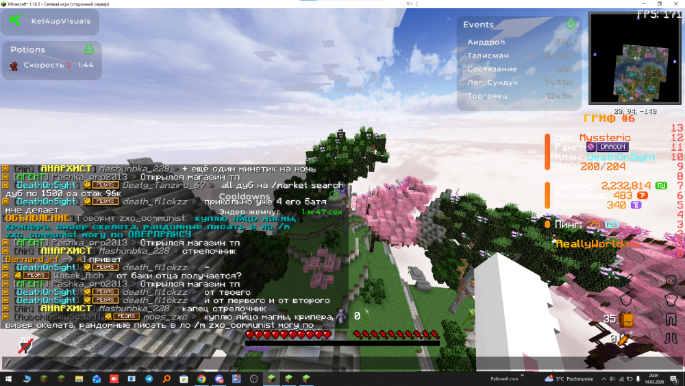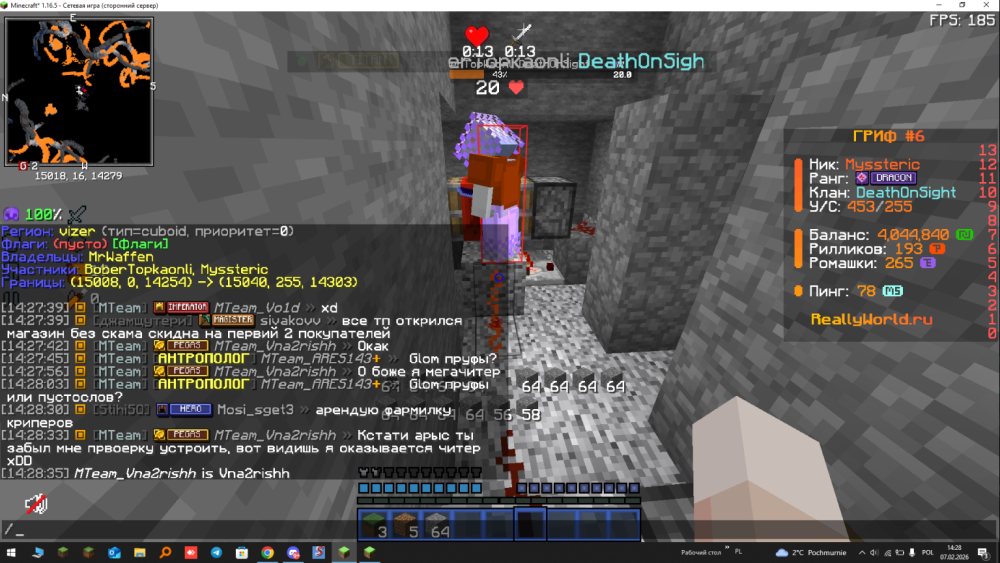 Ваш ник: Myssteric Ник нарушителя: Vna2rishh Дата нарушения: 07 02 2026 Суть нарушения: признание в читах На каком гриферском режиме было нарушение (MEGA-GRIEF/GRIEF-1.16) : 6 гриф Доказательства о нарушении (фото/видео): Дополнительный комментарий: у него фул клан софты