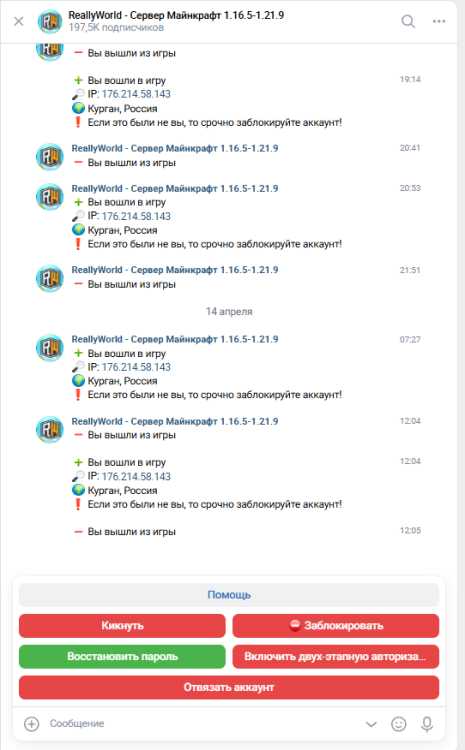 1. Ваш ник: Fllorsiknn1337 Дата нарушения: 2026-04-14 12:03 Суть нарушения: забанили без проверки без река так ещё на следущий день последний мой выход был 13 апреля в 21:53 фото будет снизу а бан я получил 14 апреля в 12:03 Номер грифа и режим гриферское выживание 33 Доказательства о нарушении (фото/видео):