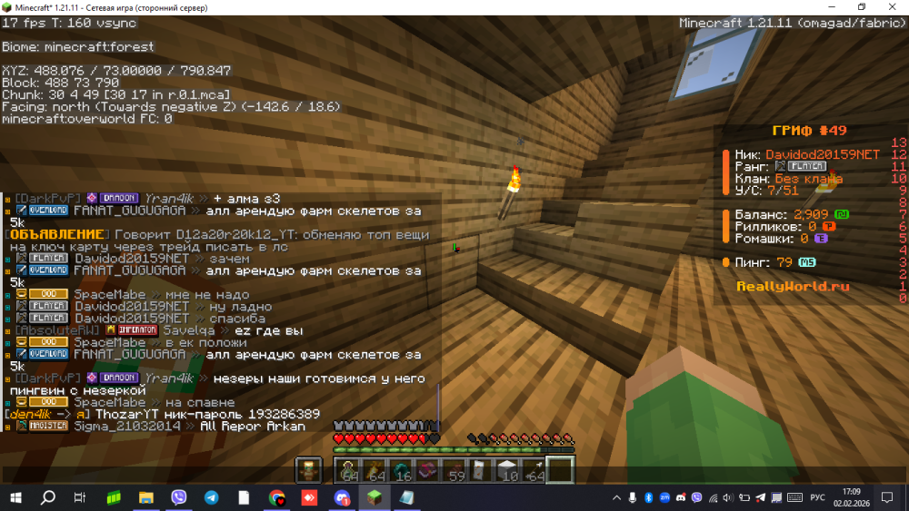 8. Ваш ник: Davidod20159NET Ник нарушителя: dedyshka993 Дата нарушения: 2 февраля 2026 примерно в 17:10 Суть нарушения: Хотел передать аккаунт На каком гриферском режиме было нарушение (MEGA-GRIEF/GRIEF-1.16) : 49 гриф, обычный Доказательства о нарушении (фото/видео): Дополнительный комментарий: Он скинул данные аккаунта и хотел чтобы я взял его, тоесть проезошла передача аккаунта. я не хочу быть в этом привязан и быть забанен, или ктото другой повелся на это и станет забаненым, поэтому пожаловался сюда. увии у меня скора др