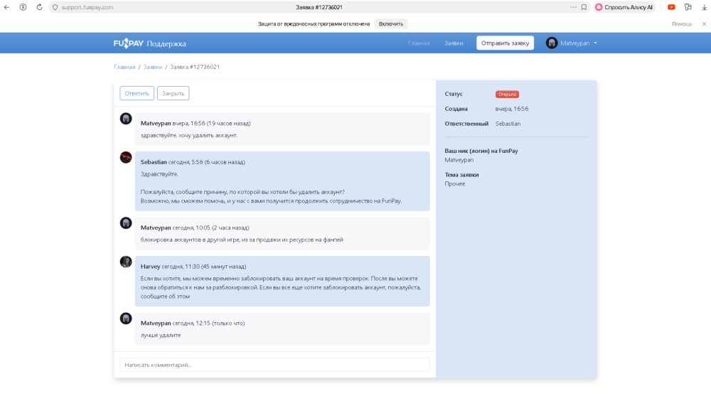Дополнительный комментарий: продавал я ресы на другом акаунте, за что получил наказание, сейчас я не знал что у меня что то стоит на фанпее, я не хотел бы ничего продавать. я могу купить разбан чтобы дальше играть? я уберу все с фанпея и удалю ак,перечитаю правила сервера. умоляю дать мне второй шанс, я хотел на хелпера подать и помогать серверу, а в итоге забанен навсегда, прошу еще раз, дайте второй шанс