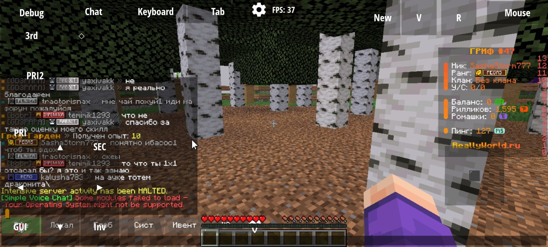 3. 1:Ваш ник: SashaStorm777 2:Ник нарушителя: tractorisnax 3:Дата нарушения: 5 апреля 4:Суть нарушения: афк бегает и ломает деревья на варп лесе 5:На каком гриферском режиме было нарушение 67 гриф. 6:Дополнительный комментарий: Я пишу ему- Что ты делаешь? Это же запрещено! А он мне отвечает- Мне пох иди на форум жалуйся. Я просто уже часа 3 там челов оттягиваю удочкой от туда а их все только больше и больше, думаю вы меня понимаете. Спасибо (