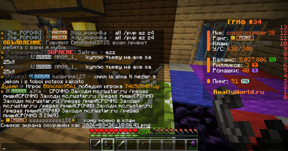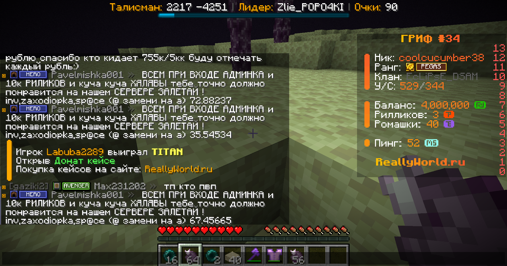 Ваш ник: coolcucumber38 Ник нарушителя: ViAnOs33 Дата нарушения:30.03.26 Суть нарушения:реклама копии риллика На каком гриферском режиме было нарушение (MEGA-GRIEF/GRIEF-1.16) :grief-34 Доказательства о нарушении (фото/видео): Дополнительный комментарий:-