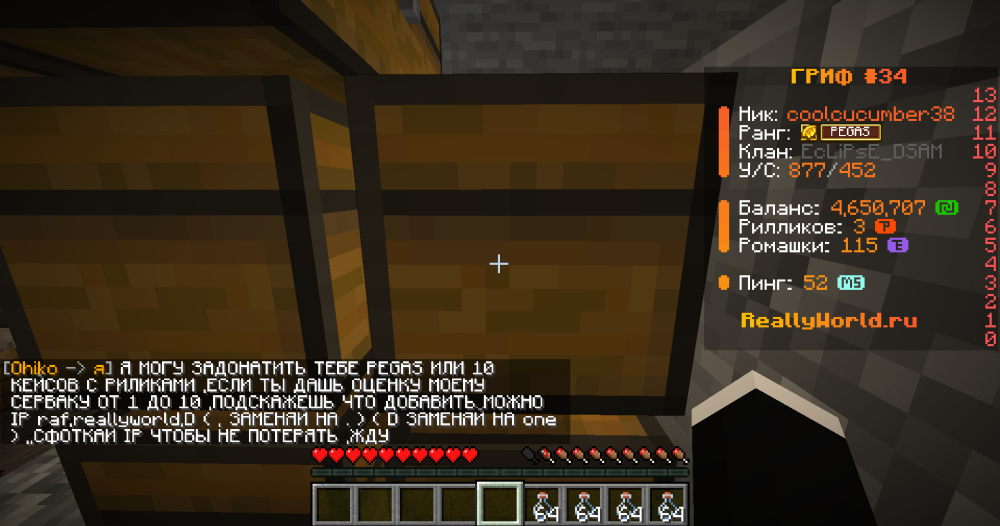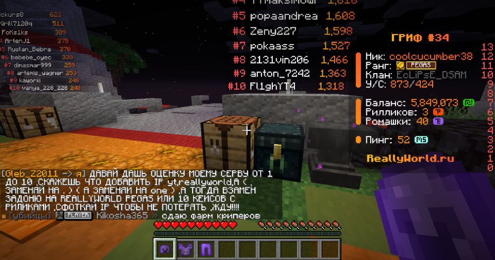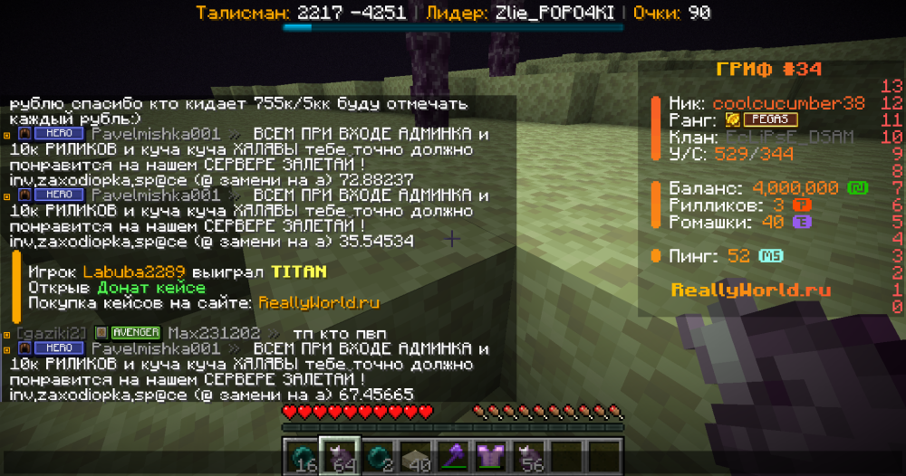 Ваш ник:coolcucumber38 Ник нарушителя:Pavelmishka001 Дата нарушения:24.03.2026 Суть нарушения:реклама копии риллика На каком гриферском режиме было нарушение (MEGA-GRIEF/GRIEF-1.16) :Grief-34 Доказательства о нарушении (фото/видео): Дополнительный комментарий:-