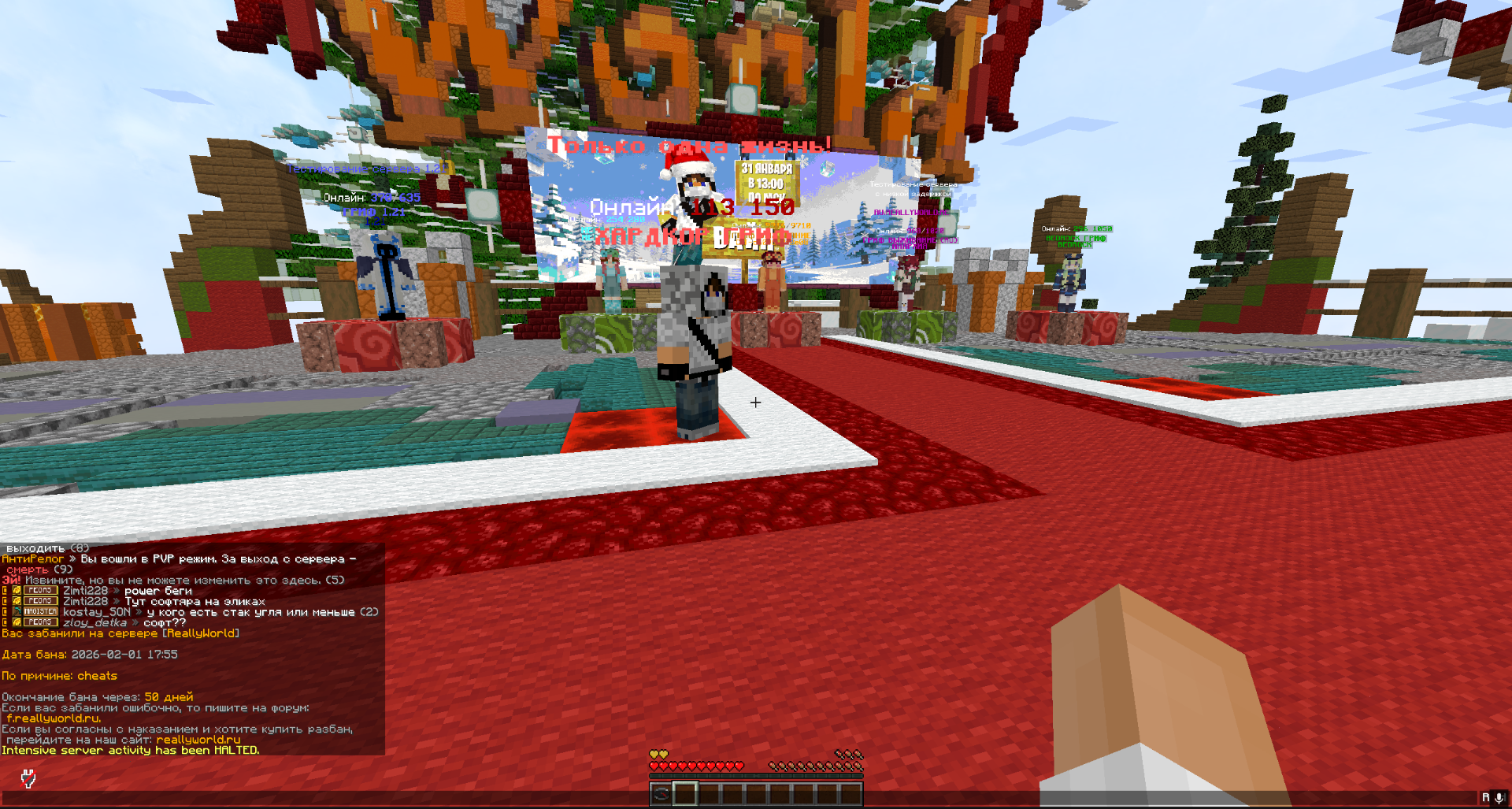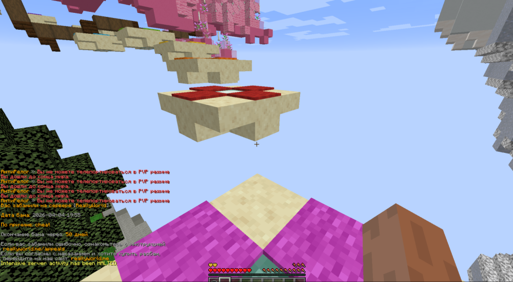 Ваш ник:ItsWor3xNew Дата нарушения:01.02.2026 Суть нарушения:я пехался с типами я был в трапки мой тим пробрался в трапку и бил их через щель и когда мы с помощью элитры вылетели нас забанило меня за читы а моего тима за тим чит хотя было наоборот нас били софты Номер грифа и режим гриферского выживания:21 Доказательства о нарушении (фото/видео): Дополнительный комментарий:
