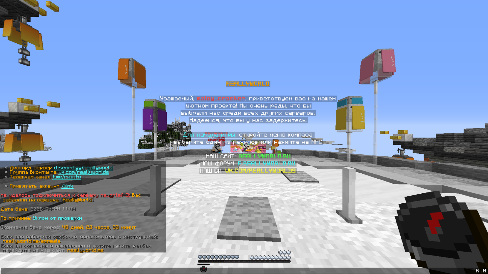1. Ваш ник: maloy_cracker Дата нарушения: 20.04.26 Суть нарушения: уклон проверки Номер грифа и режим гриферского выживания: 3 Доказательства о нарушении (фото/видео): Дополнительный комментарий: я поставил твинк на фарм, только двинулся в хате, сразу проверка, я написал за что, потом написал щас скачаю, я скачал скинул анидеск, прилетел бан уклон от проверки.