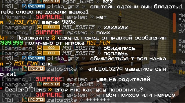 5. Ваш ник: apLLoL5274 Ник нарушителя: its_mase Дата нарушения:21.02.2026 17:07 Суть нарушения:оскорбление в лс + спам На каком гриферском режиме было нарушение (MEGA-GRIEF/GRIEF-1.16) : 3-ру грифф Доказательства о нарушении (фото/видео): фото Дополнительный комментарий:пожалуйста отправьте хелпера для мута
