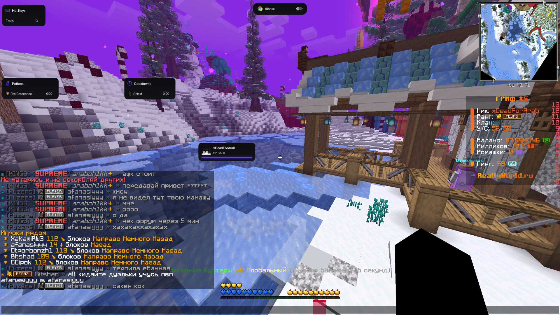 Ваш ник: xDeadForArab Ник нарушителя: afanasiyyy Дата нарушения: 23.02.2026 Суть нарушения: Оскорбление родных На каком гриферском режиме было нарушение (MEGA-GRIEF/GRIEF-1.16) : гриф-5 Доказательства о нарушении (фото/видео): Дополнительный комментарий: НА СКРИНАХ НЕ ЧИТЫ А ВИЗУАЛЫ А И ДА ЭТОТ ЧЕЛ ЕЩЕ + СОФТ
