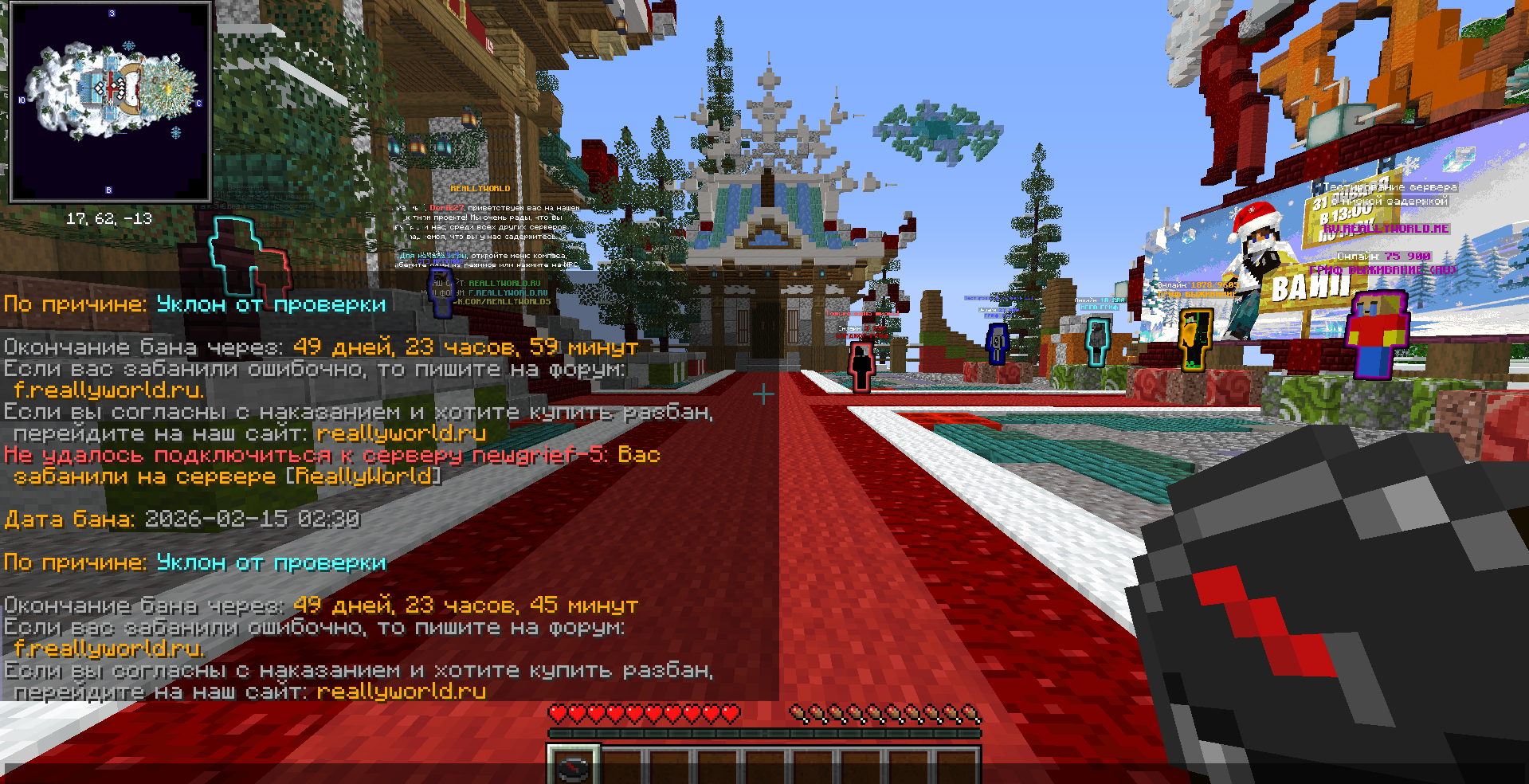 4. Dorik27 15.02.2026 Забанили за уклон на проверке Гриф 5 Прикрепил Я Регистрирую аккаунт, сразу покупаю туда привилегию Pegas. Примерно через час меня вызывают на проверку (Причем я нигде не пехался, просто строил дом), ну и поскольку я с 2019 года не играл на риливорлде, у меня не было анидеска, пошел скачивать (сначало искал где можно скачать анидеск, ибо чет там не было кнопки, потом начал качать) ну и время вышло, как за 5 минут я могу скачать анидеск? причем я модератору в чате писал про него. Не понятно еще по какой причине меня вызвали, онли дом строил, так и регистрация была час назад... Купил донат называется))