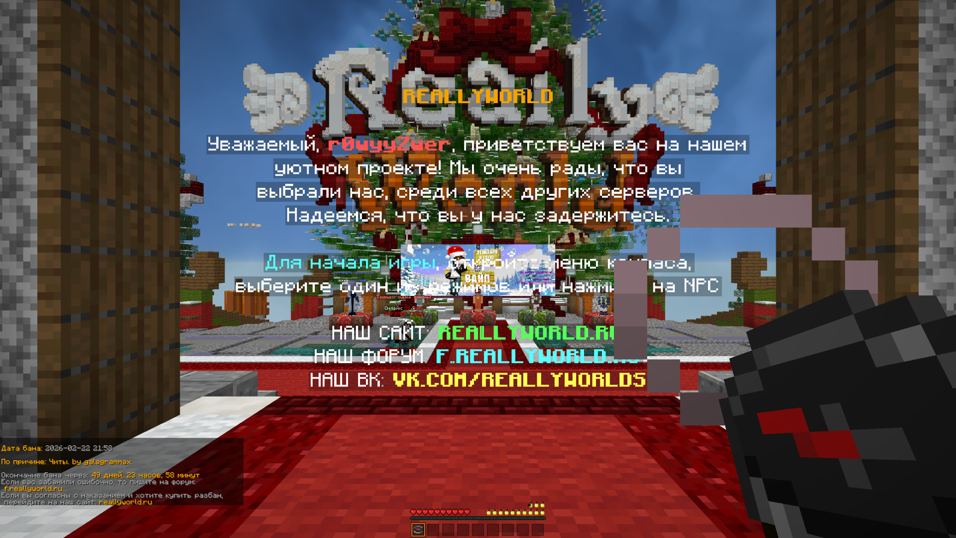 Ваш ник: r0wyyZwer Дата нарушения: 11.04.2026 Суть нарушения: снес хаты Номер грифа и режим гриферского выживания: 29 grief Доказательства о нарушении (фото/видео): Дополнительный комментарий: забанили за тим чит и я купил разбан потом тепаюсь на хату а хаты нету )) востановите хату ало