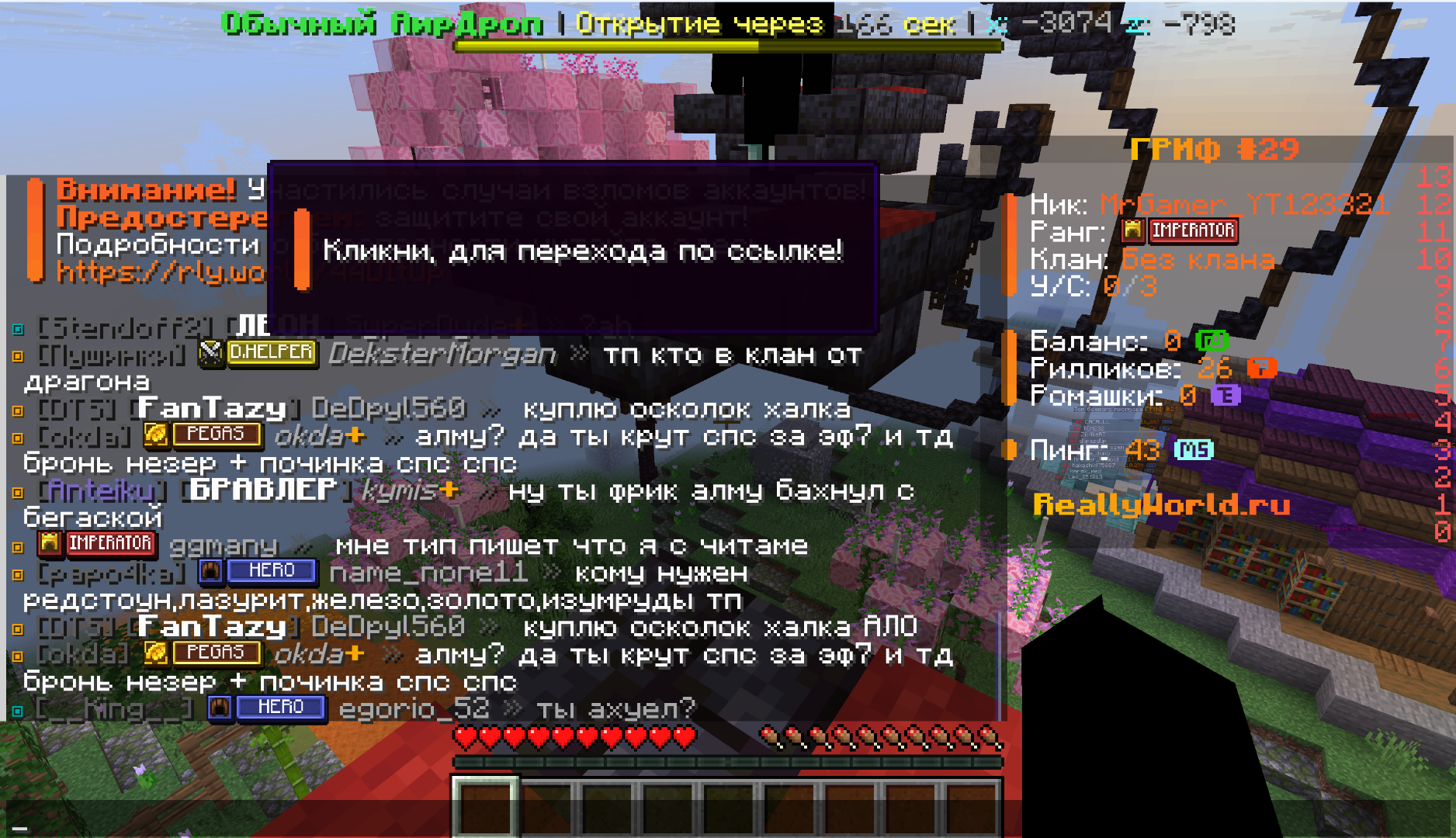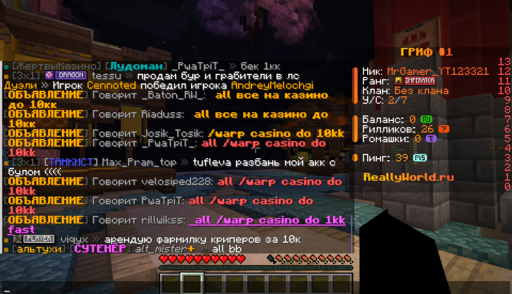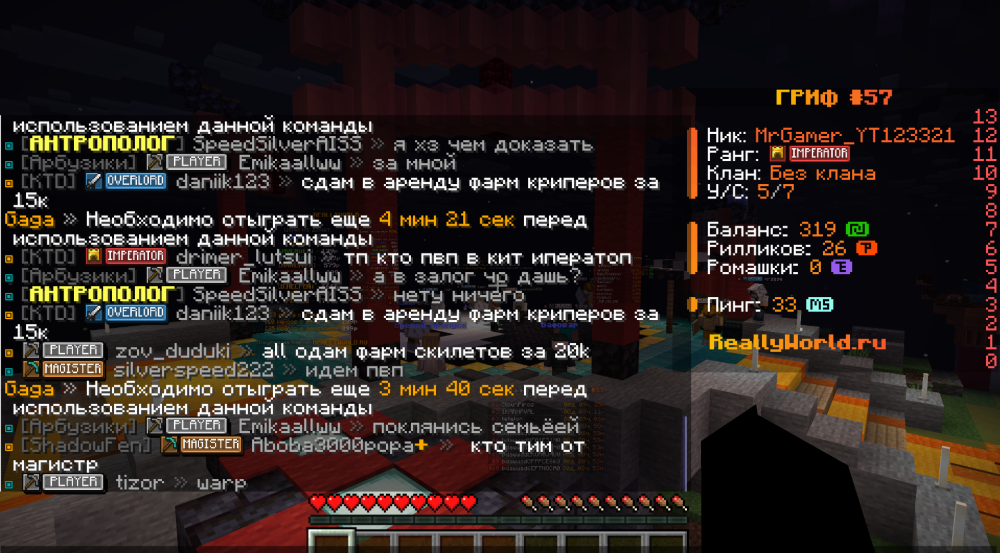 10. Ваш ник:MrGamer-Yt123321 Ник нарушителя:egorio_52 Дата нарушения:22.03.2026 Суть нарушения:Оск На каком гриферском режиме было нарушение (MEGA-GRIEF/GRIEF-1.16) :GRIEF 29 Доказательства о нарушении (фото/видео):фото Дополнительный комментарий:данный игрок использовал не цензурные слова