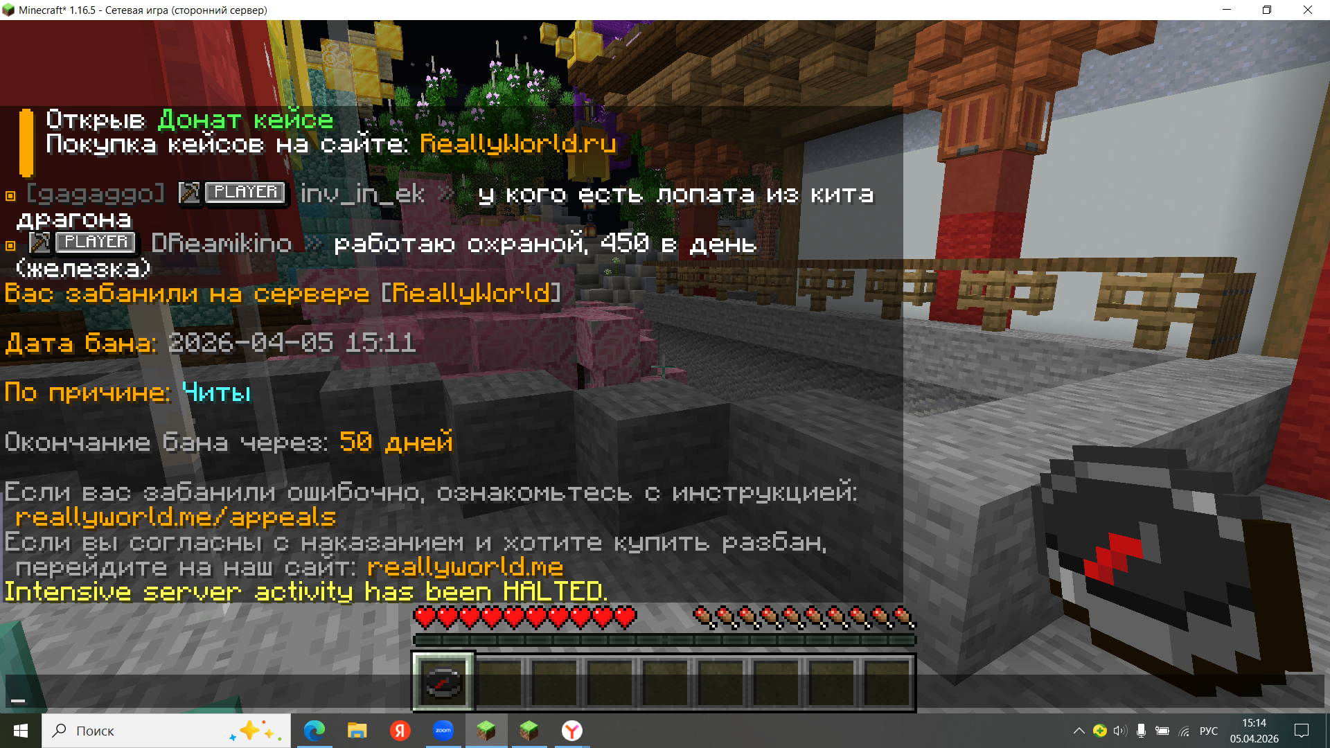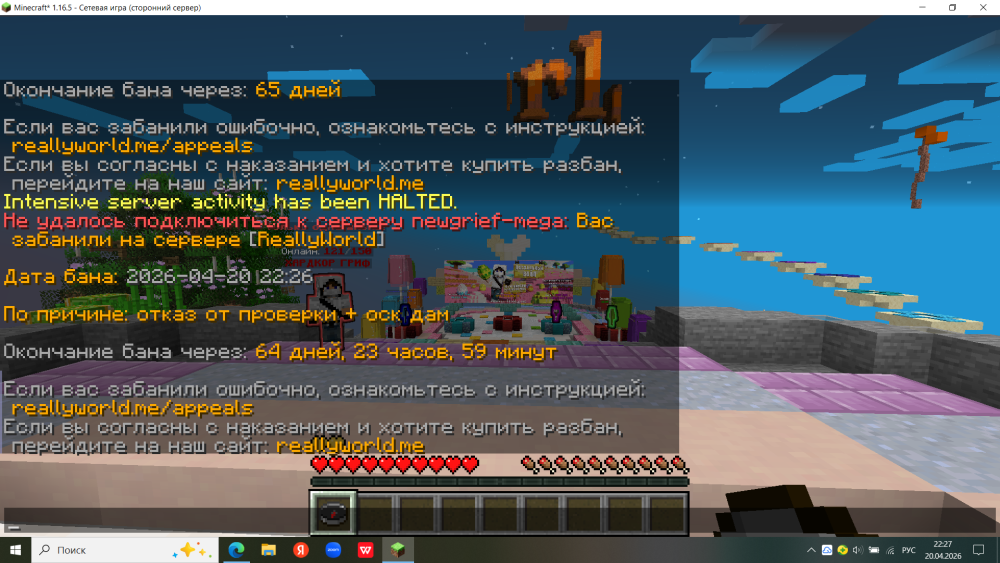 Дополнительный комментарий:я стоял афк минут десять потом выключился комп я включил его и поять был в афк меня вызвали на проверку дали бан за уклон от проверки потом я купил разбан а дома моего нету ,вытекает вопрос ,какой конкр пункт правил я нарушил прям тыкните мне цыфрой где черному по белому будет написано ,что если стоять в афк до и во время проверки и тебе супер крутой модер даст бан ,за уклон(такого правила кстати нету) ,то это снос дома ,прошу принять меры и вернуть мне мой дом ,а также мои ресурсы
