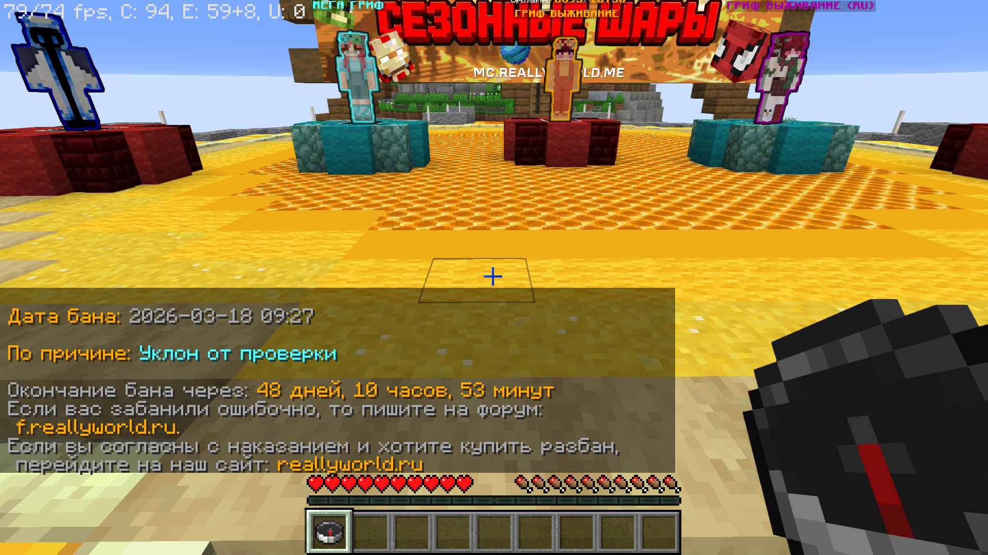 Номер грифа и режим гриферского выживания: 44 гриф