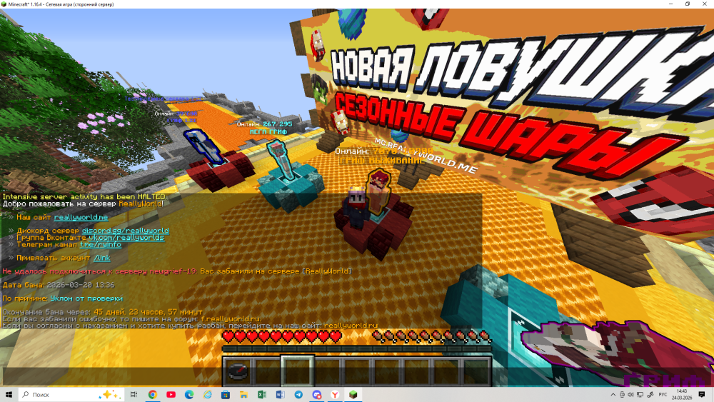 7. 1.ITADORI_68_YEARS 2.2026-03-20 13:36 3.уклон от проверки 4.19 гриф выживание 5. 6. забанили за уклон от проверки но я кидал ани деск как просили только как написано в инструкцые по проходу проверки на рилеворолде мне не появлялось окошечько что бы модер мог проверить меня