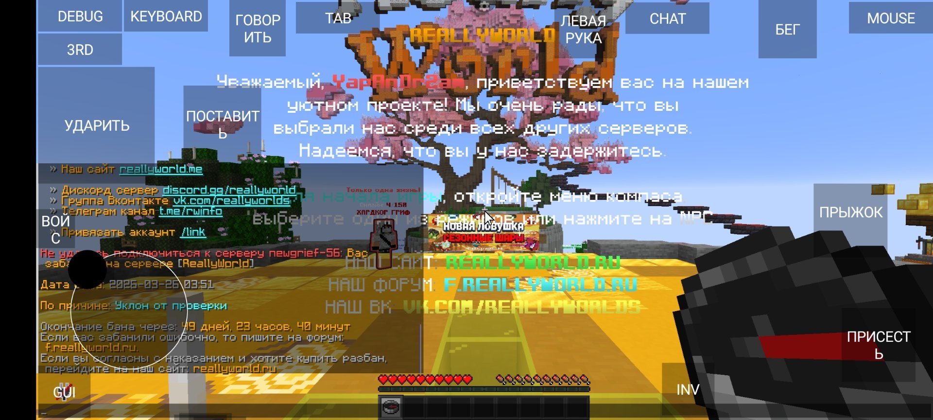 3. Ник: YapAnDr2am 56 гриф Я хотел написать "все щас" и после чего скинуть адрес анидеска, но после слов "все щас" я был забанен на 50 дней по причине "уклон от проверки" Ник администратора: не помню Скриншот бана: Так же у меня есть тим из реальной жизни который может доказать что я был без читов (даже 3), так же мне кажется что меня забанило из-за того что вышло 5 минут времени на скачивание анидеска, но это неточно, с уважением к персоналу, Яп