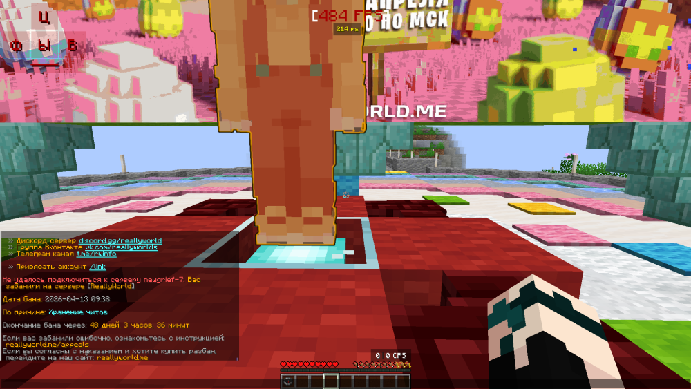 3. Ваш ник:yarik_edgar2 Дата нарушения: примерно 9:38 по мск 13.04.2026 Суть нарушения: хранение читов Номер грифа и режим гриферского выживания:7 гриф Доказательства о нарушении (фото/видео): фото Дополнительный комментарий: ник того кто проверял gus_20001 (может быть не точный я не запомнил) у меня были визуалы разрешенные на сервере и приложения которые не касаются Майнкрафта