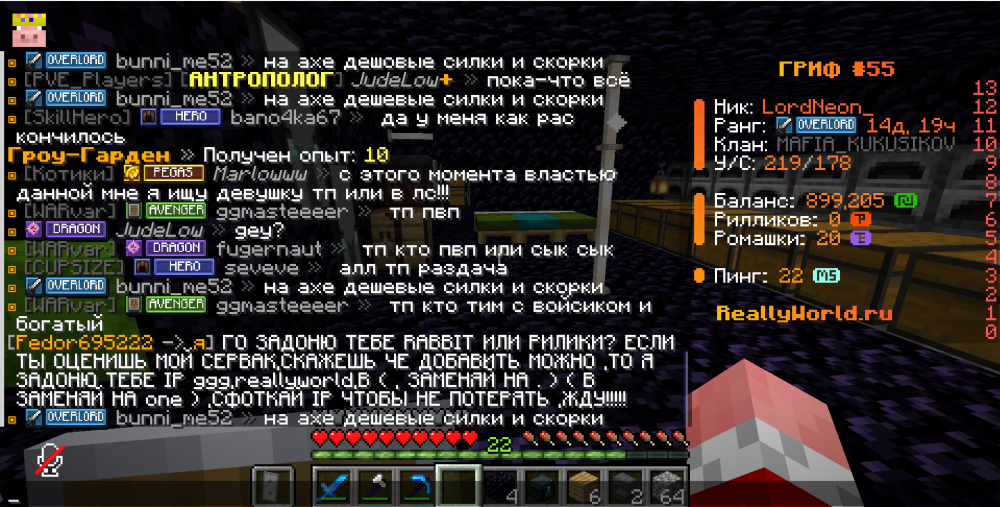Здраствуйте я ваш игрок грифа 55 я хочу сообщить что игрок bob_rob_buterbro он меня заманил в кабинку и убил все его удары были критами и попадали по мне все Также он меня сносил с легкостю за удар по 4-5 сердец у меня была лучшая броня коса жнеца голова кролика и сила супермена также сыли но он меня убил Ето просто невозможно поскольку я был сильно забафаний а он меня убил с нескольких раз меня всяких сил Пожалуйста проверьте его мы подали на него жалобу и на другого игрока но некто его не хочет проверять Мой ник LordNeon_