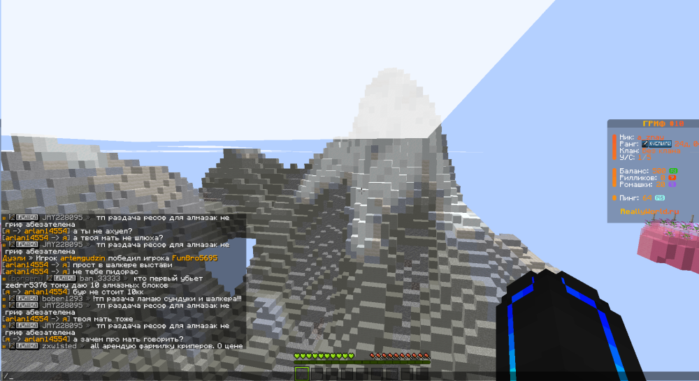 Доказательства о нарушении (фото/видео):немогу предоставить тк когда я посмотрел реплей мне через минут 20 выключили свет и файлы майкрафта не сохранились в том чесле и реплей