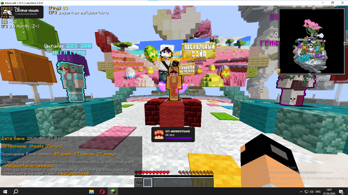 6. Ваш ник: polina_limbo Ник нарушителя: PakMozra Дата нарушения: 07.04.2026 Суть нарушения: некк бан из за форума читы На каком гриферском режиме было нарушение (MEGA-GRIEF/GRIEF-1.16) : 7 гриф (на 17 грифе был рек) Доказательства о нарушении (фото/видео): фото Дополнительный комментарий: я залетаю на варп, и начинаю убивать типов 3x1 и они прыгают в свои трапки, я пересмотрел рек в 0.1 замедлении и не нашел нечего подозрительного кроме элитра свапа, да я играл с ним но это бан 4 - 5 дней где то, я играл под пингом 200 - 300 потому а тпс где то 14 и из за этого есть недочеты в моих ударах и подозрения. игрок уже подтвердил мне в лс то что ошибся и он вроде уже сделал заявку или че то написал на форуме чтобы меня разбанили