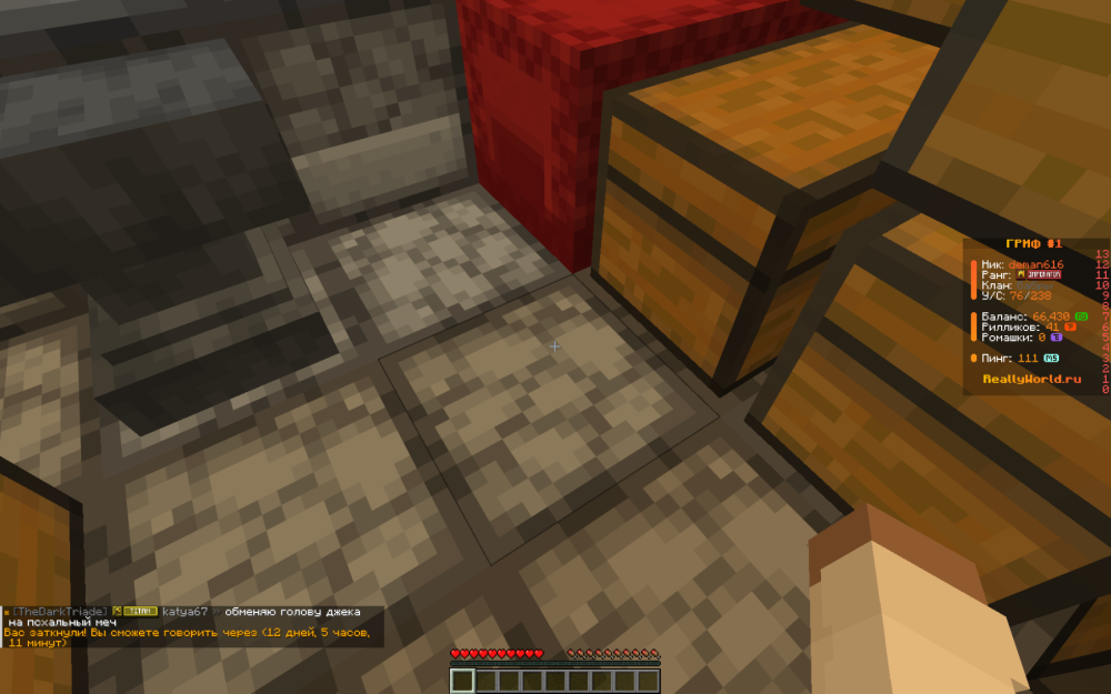1. Ваш ник:deman616 Дата нарушения:18.04.2026 Суть нарушения:меня замутили на 13 дней потомучто игорок попросил написать запрещеенное слово о котором я не знал Номер грифа и режим гриферского выживания:гриферское выживание ру 1 Доказательства о нарушении (фото/видео): Дополнительный комментарий:я не помню имя игрока но мне важнее вернуть доступ к чату
