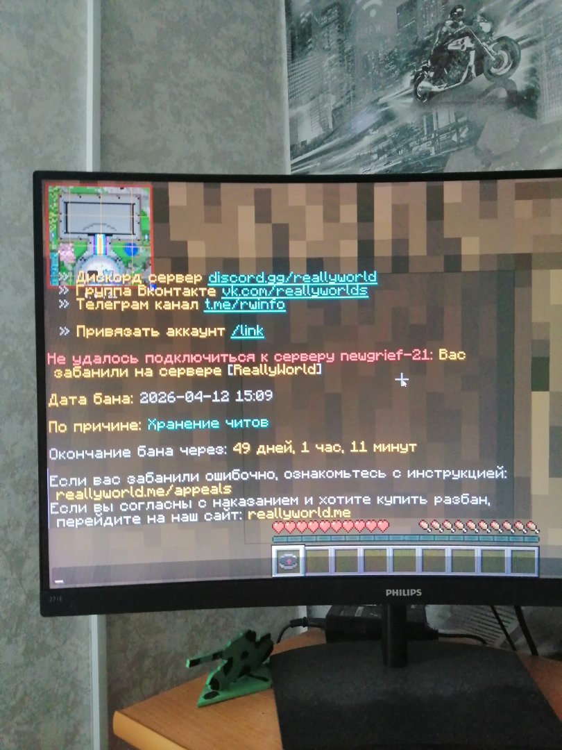 1. 1.gosdin142 2.2026-04-12 15:09 3. Короч я играл меня вызвали на прову я её прошёл потом через 3 часа вроде я лечу а аир потом меня вызывает модер я ему пишу что меня уже вызывали на прову потом я уме скинул аник модер посмотрел и чего не найдя банит 4.21гриф гриферское выживание 5. 6.если он реально какие-то Читы нашёл или запрещённый мод то напишите что это потому что у меня ток из модов это миникрату просмотр шалкера в инвентаре заходить на разные акки с 1 маинкрафта и маленький огонь ну может он там увидел моды хоррор ну там the Broken Script no moon пж скиньте что он там нашёл чтобы я их удалил