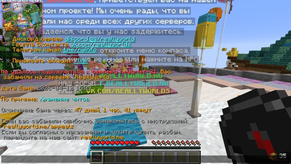 5. 1.gosdin142 2.2026-04-12 15:09 3. модер забанил нечего ненойдя за хранение читов хотя я уже проходил проверку 4.21гриф гриферское выживание 5.докозательств нету +скинуть бан немогу потому что меня пишет недостаточно места 6.я магу скинуть вам фото бана через дс lyntik2.0 мой дискорд