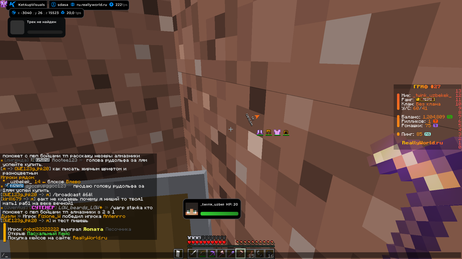 1. Ваш ник:_twink_uzbekek_ Ник нарушителя:Kamran221100 Дата нарушения:17.04.2026 Суть нарушения:читы На каком гриферском режиме было нарушение (MEGA-GRIEF/GRIEF-1.16) :27 Доказательства о нарушении (фото/видео): https://youtu.be/K0pkFEDAdV8 00:53 первый кадр где он спалился второй кадр 01:10 Дополнительный комментарий: максимально надеюсь на бан