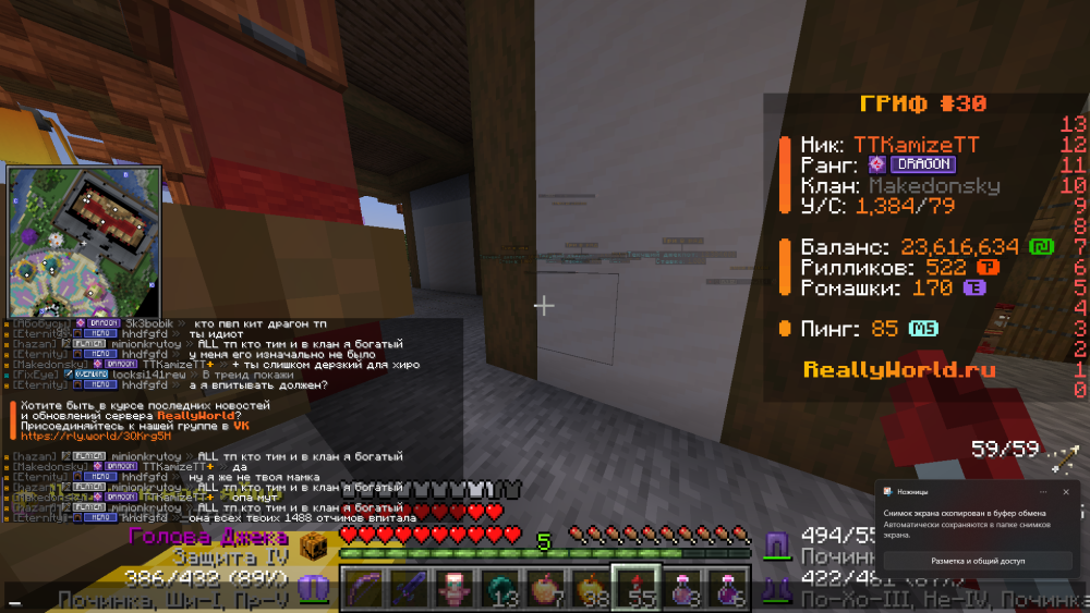 Номер грифа и режим гриферского выживания:30гриф