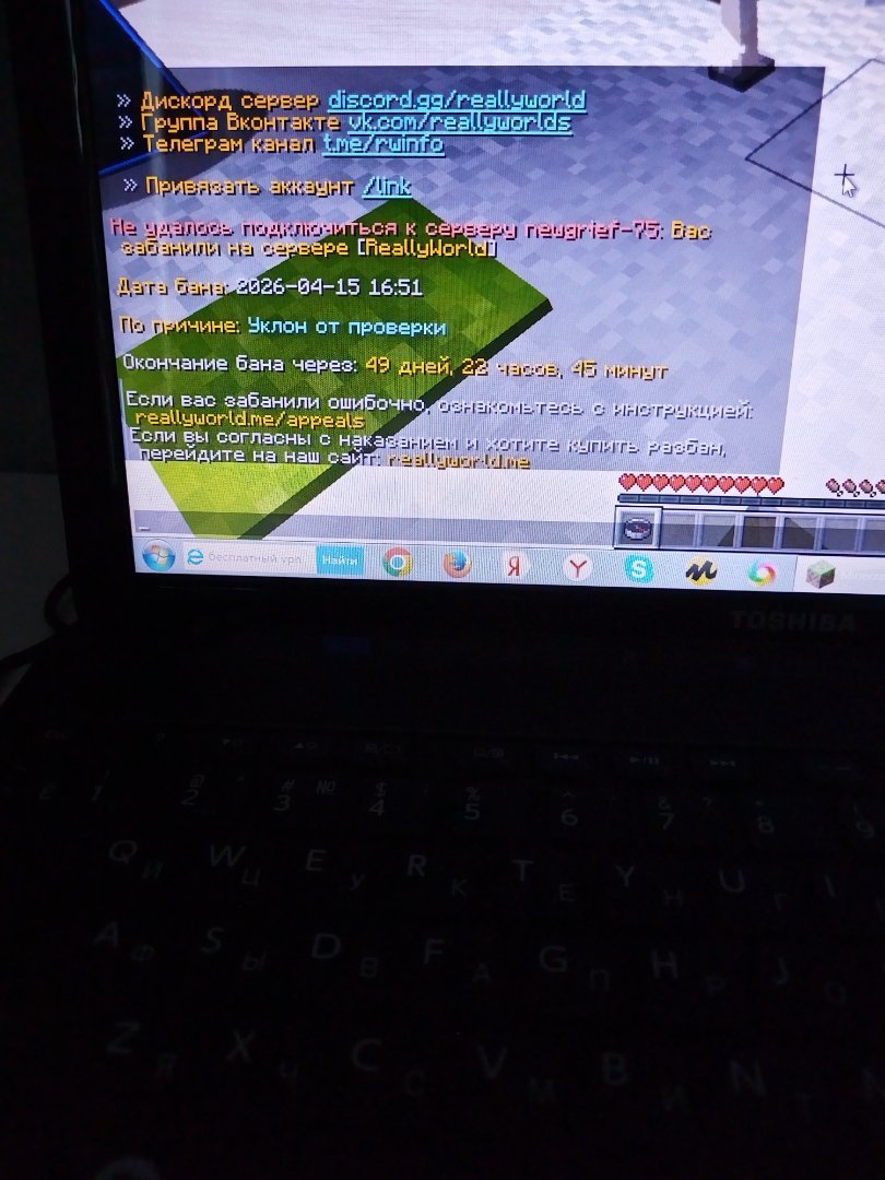 Дополнительный комментарий:я играл на сервере и убил обычного игрока, меня вызвали на проверку читов, инструкцию мне не выдали. Я пытался связаться с модератором, но мне никто не отвечал. В итоге простояв 5 минут я получил бан за уклонение от проверки читов.