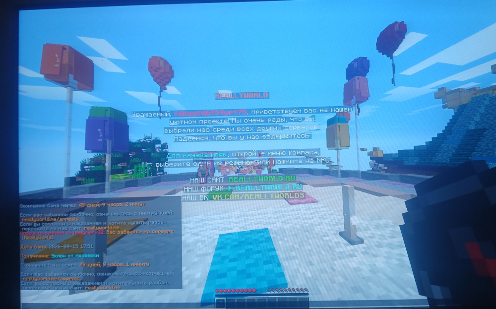Добрый день/вечер! Меня забанили на гриферськом сервера я был на спавне и просто бил чела меня визвали на проверку я попросил по дискорду (у меня нет ани диска)