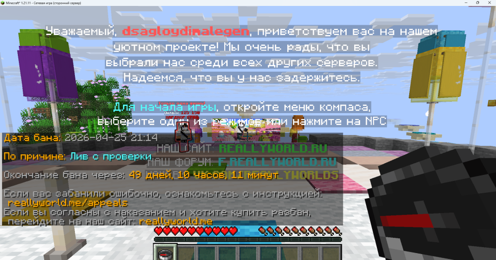 5. Скриншот бана прилагается.