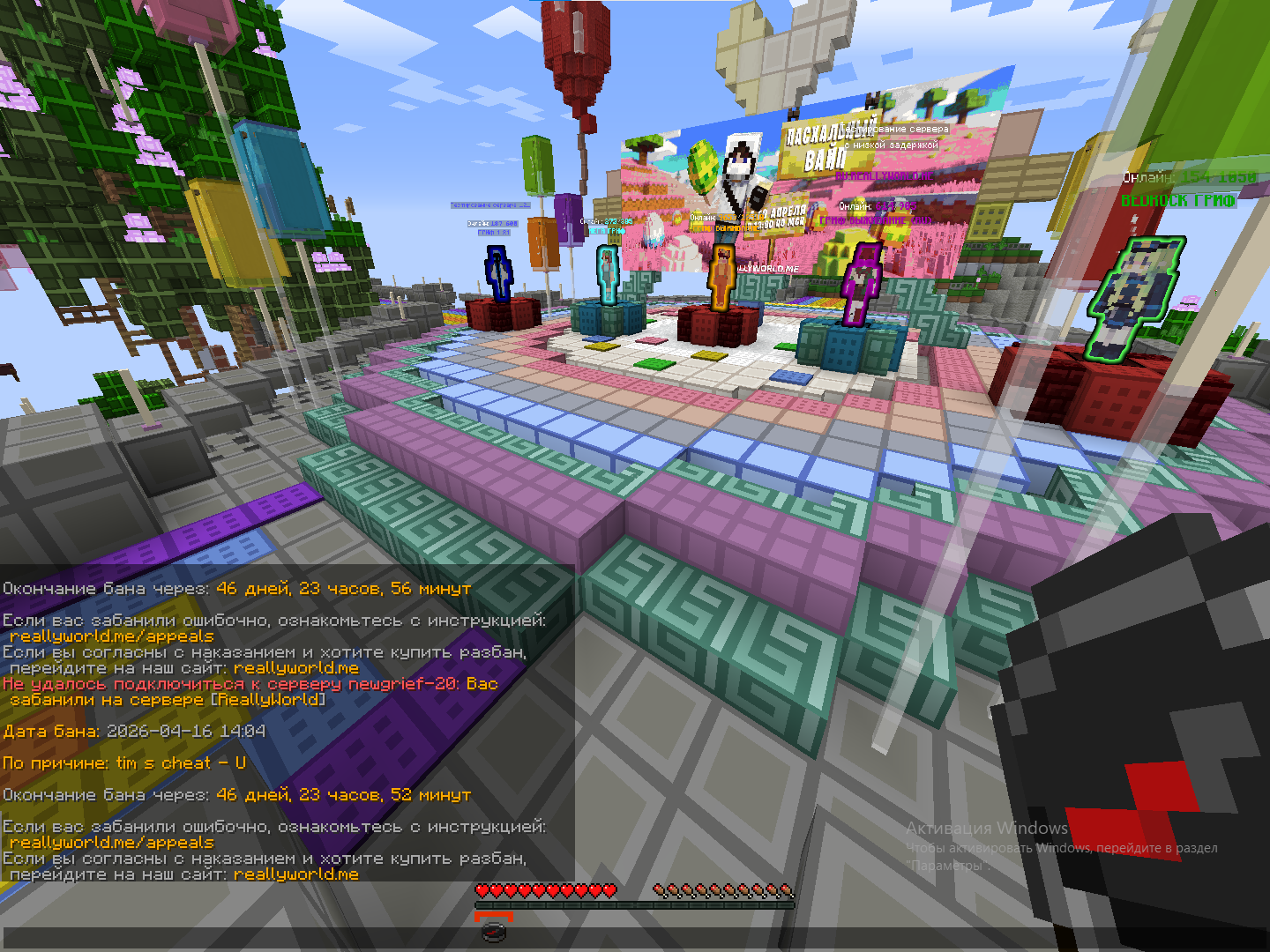 1. Ваш ник:Mr_sevkav Дата нарушения:2026-04-16 14 04 Суть нарушения: тим чит Номер грифа и режим гриферского выживания:hub Доказательства о нарушении (фото/видео): Дополнительный комментарий:я стоял в хабе отошел покушать прихожу пытаюсь зайти на гриф а там бан за тим чит