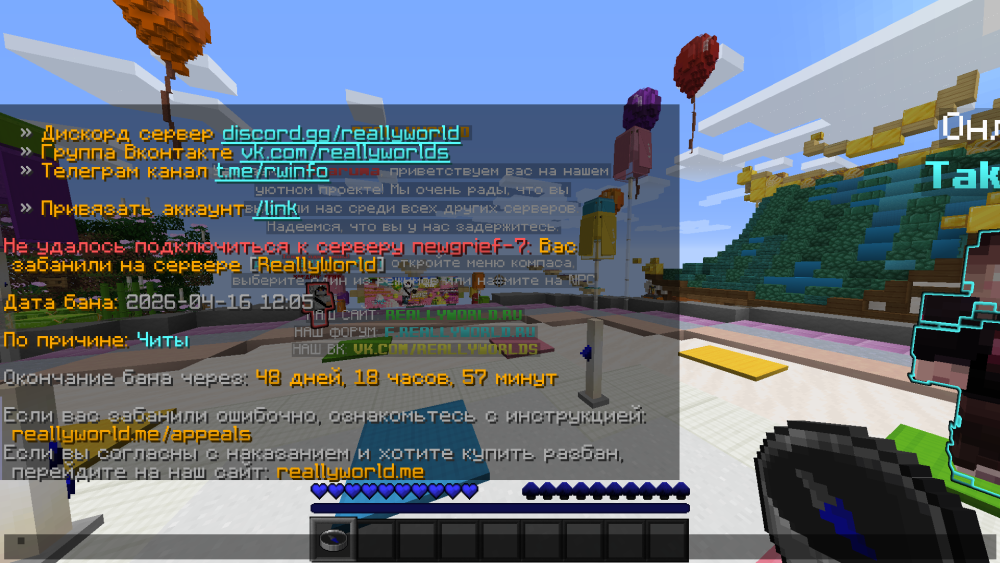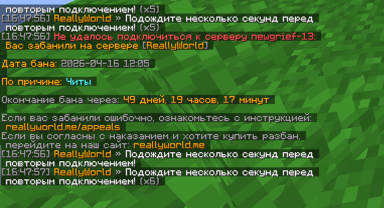 меня не было на сервере во время бана, а точнее за 10 часов до бана я играл