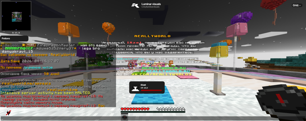1. Форма подачи Жалобы на Администрация. Ваш ник: IXzet Дата нарушения: 16.04.2026 Суть нарушения: Бан за хранение читов которых нет Номер грифа и режим гриферского выживания: 48 гриф Доказательства о нарушении (фото/видео): Дополнительный комментарий: Проверяющий забанил за Хранение Читов, хотя читов не было. Прошу посмотреть запись проверки модератора и разобраться в ситуации. Надеюсь, Вы примите необходимые меры. Заранее спасибо! Важно: