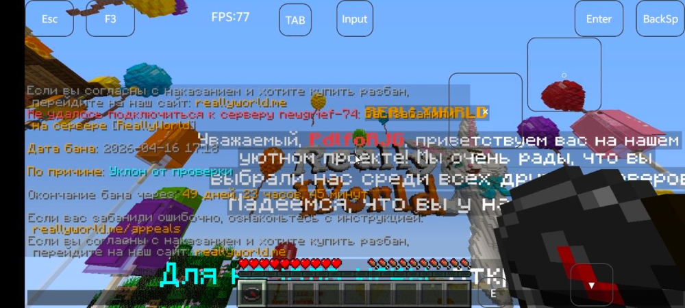 3. 1. Мой ник PdlfoRJG 2. Дата 2026-04-16 17:18 3. Уклон от проверки 4. Гриферское выживание (1.16.5-1.21.9. Номер грифа 74) 5.