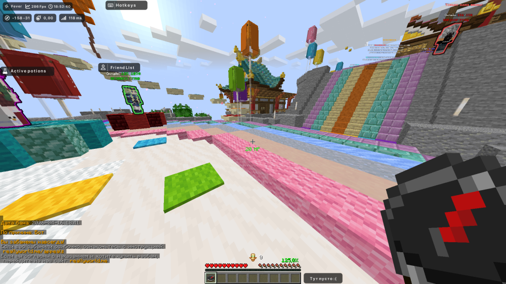 1. Ваш ник: DeadXDeath Дата нарушения: 16.04.2026 Суть нарушения: я получил бан когда я просто стоял на /warp les афк в домике Номер грифа и режим гриферского выживания: 3 Доказательства о нарушении (фото/видео): Дополнительный комментарий: Расмотрите пожалуйста жалобу, я стоял афк на /warp les в домике , возвращаюсь к пк и меня забанили по причине bot я не знаю что могло произойти может администратор подумал что я бот и забанил пожалуйста рассмотрите жалобу
