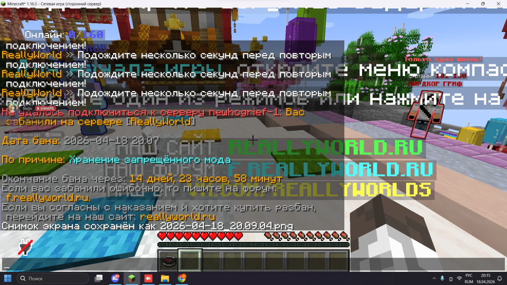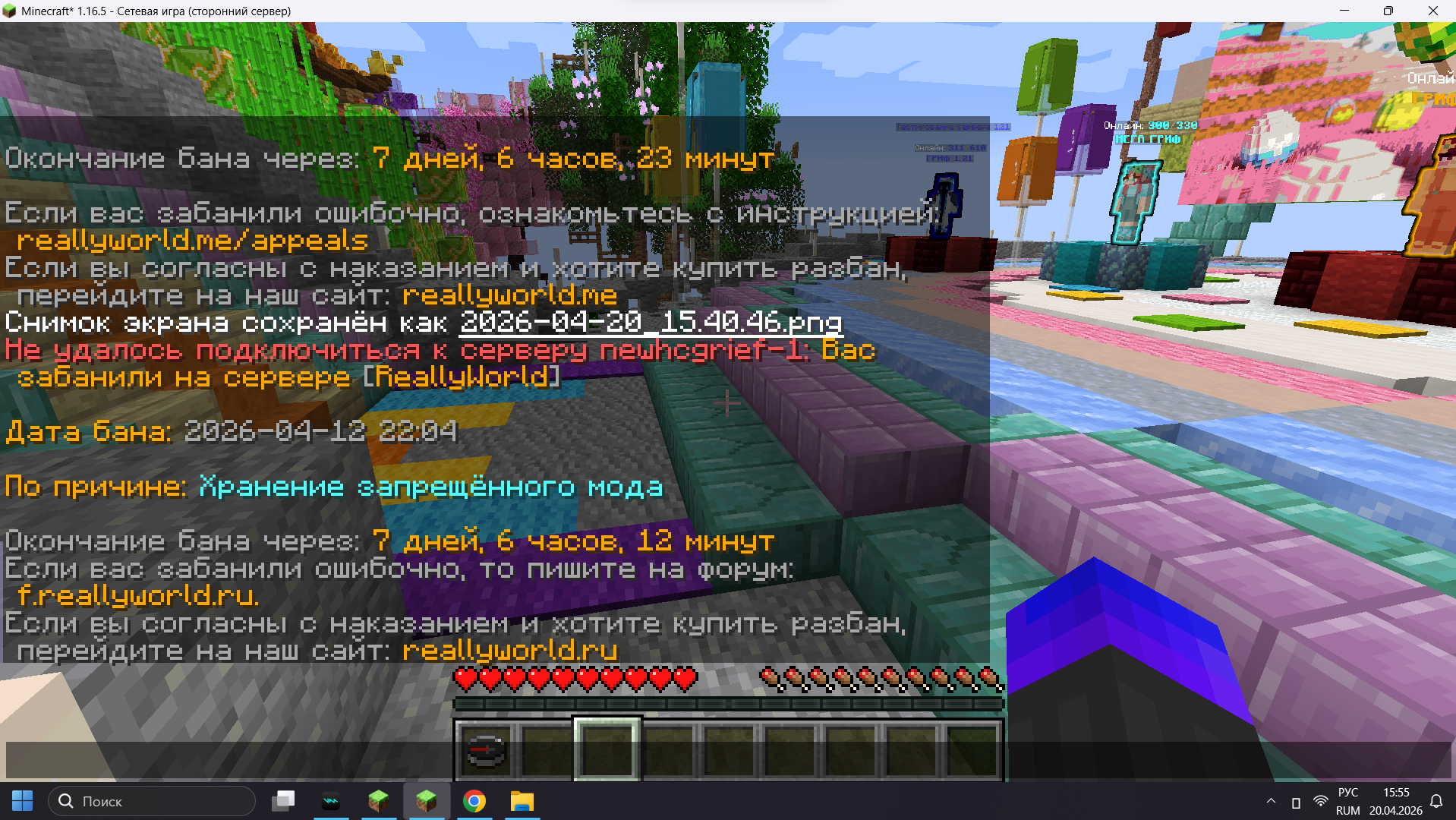 1. Ваш ник:Aden2016 Дата нарушения:2026-04-12 Суть нарушения: Визуалы Номер грифа и режим гриферского выживания: гриф выживания -38 Доказательства о нарушении (фото/видео): Дополнительный комментарий: Отбаните пожалуйста я нечо не нарушал я просто стоял на спавне закупался на аукционе