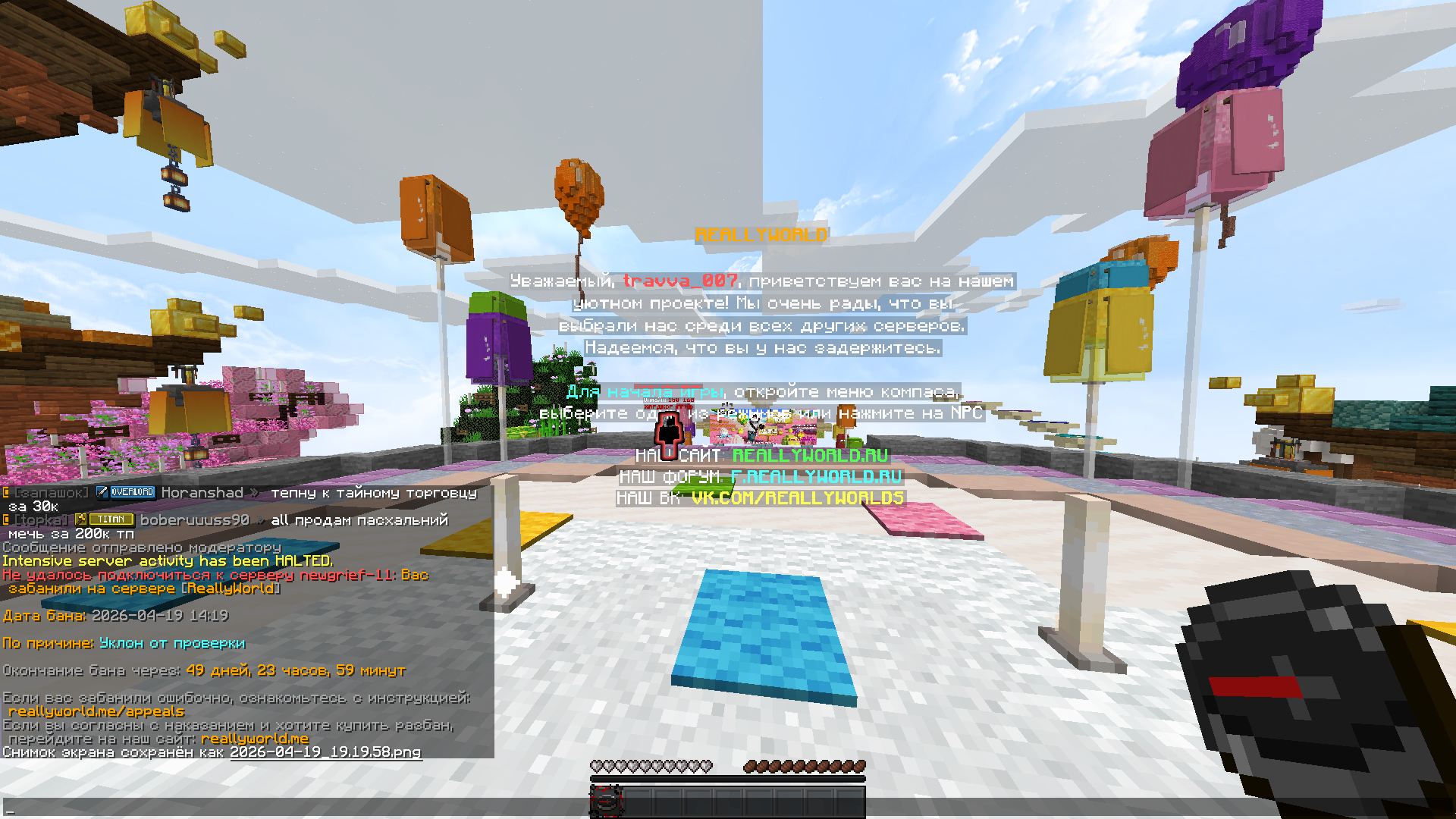 4. Ваш ник:travva_007 Дата нарушения:19.04.14:19 Суть нарушения:кидал код от анидеска а модератор ничего не делал Номер грифа и режим гриферского выживания:11 Доказательства о нарушении (фото/видео): Дополнительный комментарий:я просто играл и дали проверку я кидал код от анидеска а модератор ничего не делал,бан выдан не честно!!
