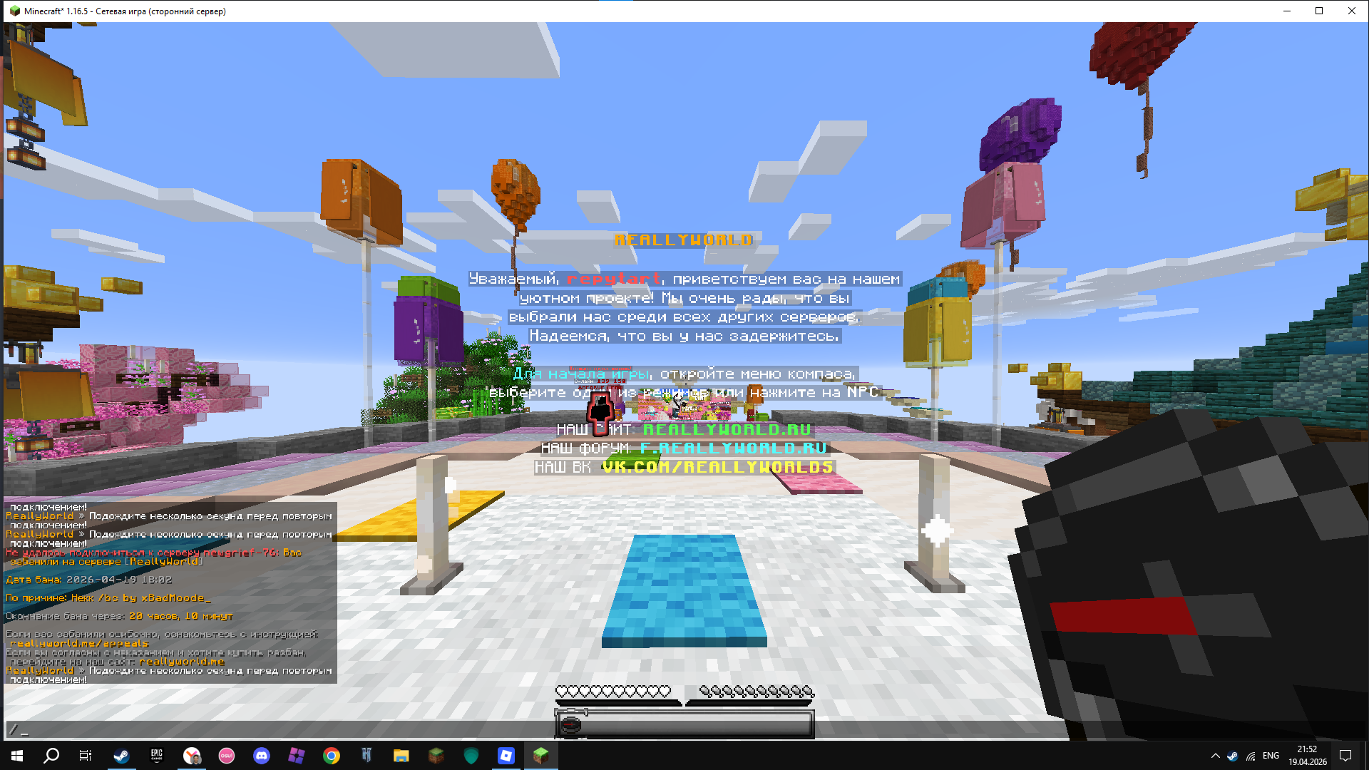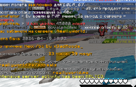 2. repytart xBadMood_ 2026 04 19 grief 1.16 ну гриферское выживание я играли просто написал в /bc хелпер замуть меня на 67 секунд я же просто прикольнутся и меня забанили алиса сказала что это за плохое настроение хелпера лол