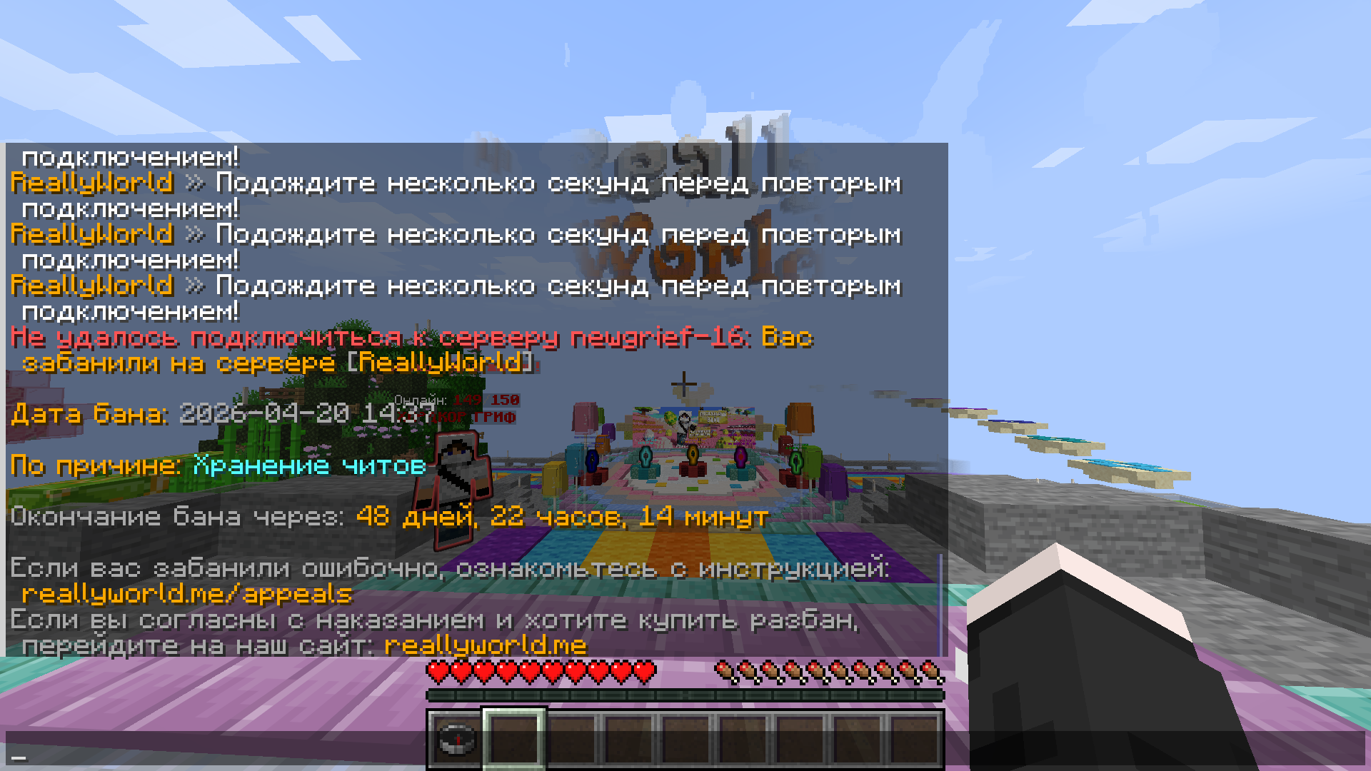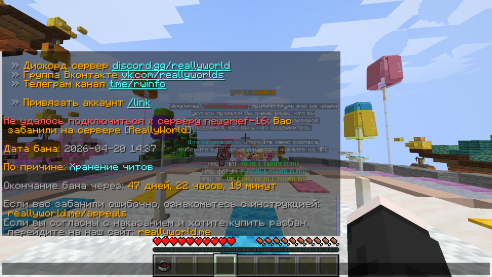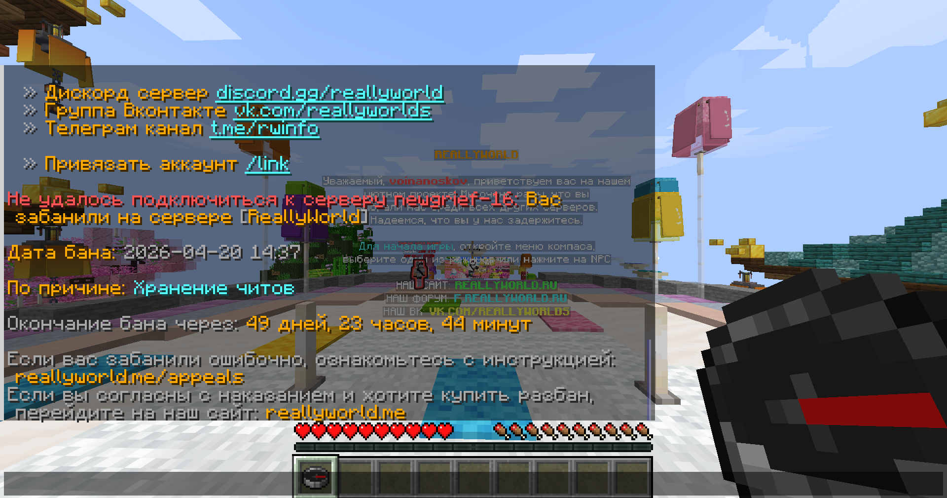 я просто играл на спавне и мне прилетает проверка на читы я все делаю НО мне выдают бан за иксрей В ОДИНОЧНОМ МИРЕ ник voinanoskov