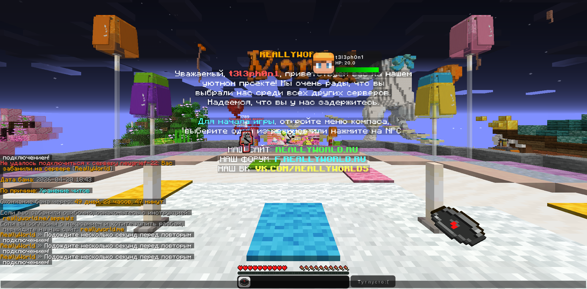 Ваш ник: t3l3ph0n1 2. Дата блокировки: 20.04.2026 3. На каком гриферском режиме было нарушение: (номер грифа и версия грифа) 15гриф 1.16.5 4. Доказательства о нарушении (скрин блокировки) нашли у меня папку импакт с путем на стим и бан дали
