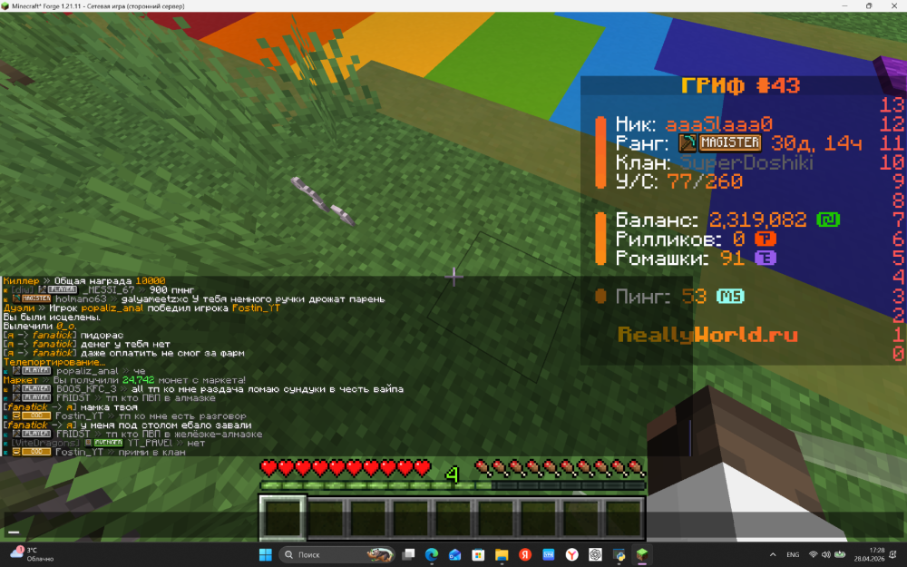 Форма подачи Жалобы на Игрока. forceclown 1213434 28.04.2026 запрет тряпки 5 гриф если сможете верните ресы