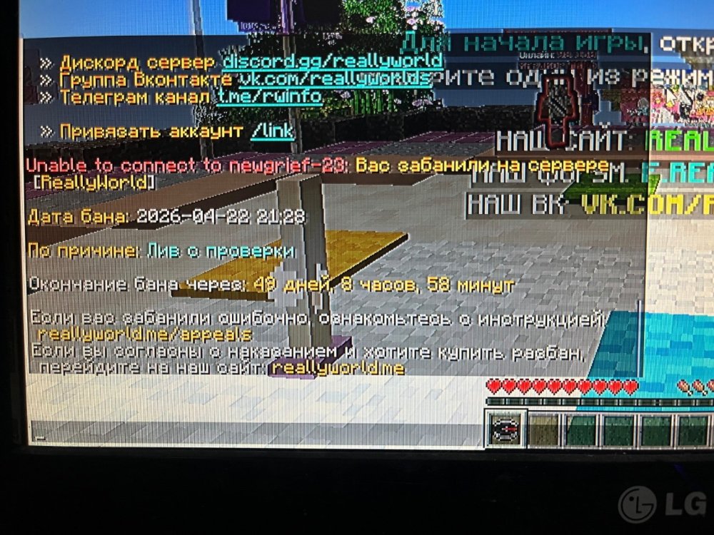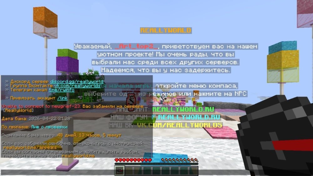 Дополнительные пояснения: Я покинул игру во время проверки, так как мне не разрешают общаться с другими людьми в игре, поэтому я ливнул с проверки из за того что осознавал что мне прийдется общаться с кем-то еще и ко мне зашли, Я осознаю что это выглядит как уклонение от проверки и скрывание сторонних ПО, но я никогда их не использовал. Я прошу отнестись к этому с пониманием и разбанить меня вы можете за мной все время следить но я не могу общатся с вами, с уважением _Art_top2_
