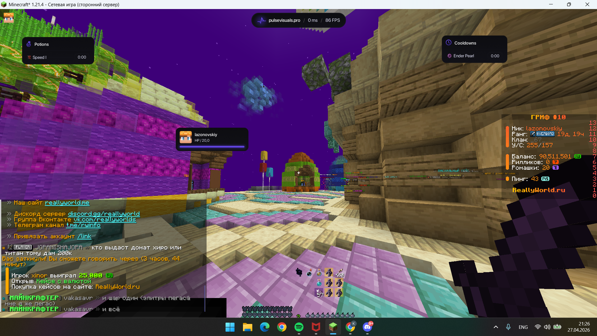 2. Ваш ник: lazonovskiy Ник нарушителя: ZxcNelaik Дата нарушения: 24.04.2026 Суть нарушения: soft На каком гриферском режиме было нарушение (MEGA-GRIEF/GRIEF-1.16) : GRIEF-1.16.15 (10 сервер) Доказательства о нарушении (фото/видео): https://youtu.be/VNv6vq2pTJE?is=GktbEUvo8hIyox10 Дополнительный комментарий: свапнул голову без задержки таймкод в комментариях в ют также играл с килкой