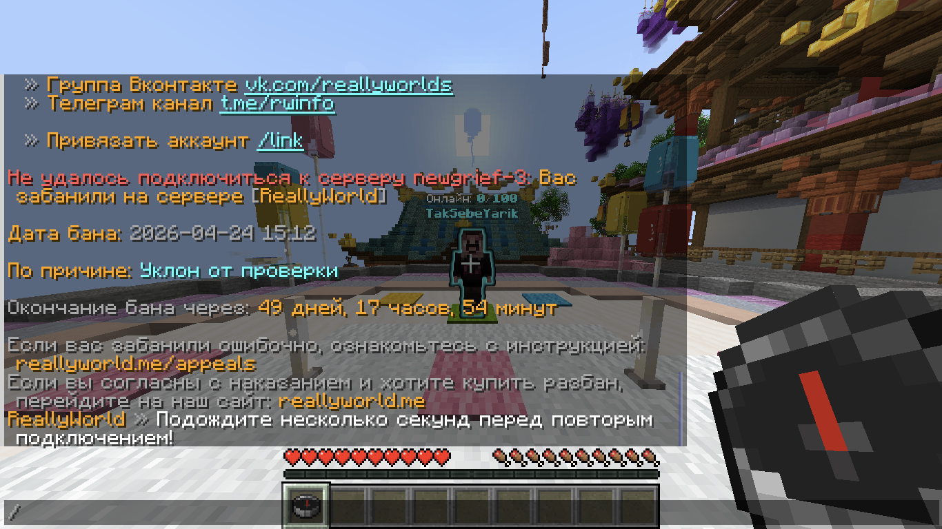 мне дали просто так бан когда я играл на 23 грифе /warp pvp я писал модеру за что но мне не отвечали и у меня нет анидеска и дс ник AnvMinec пожалуйста разберитесь