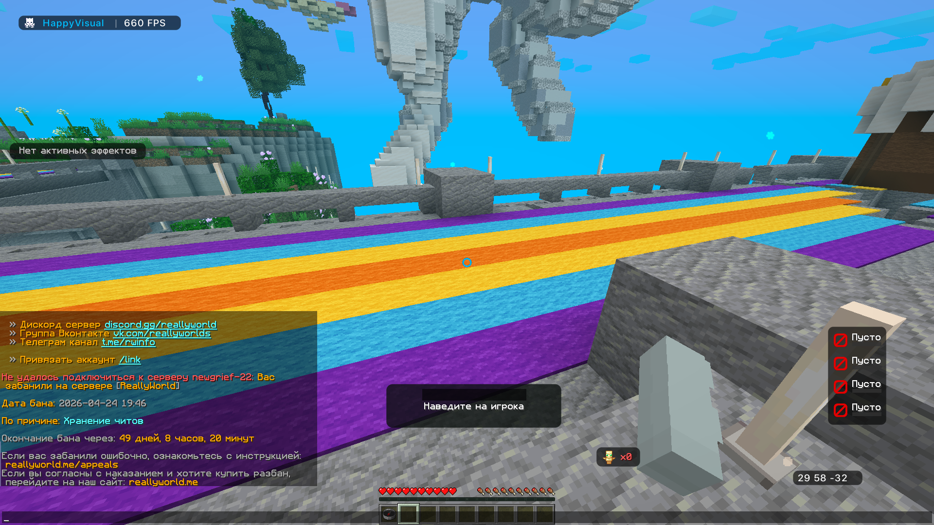 Суть жалобы: Меня вызвали на проверку я думал что все будет без проблем и я ее пройду поэтому не записывал (у меня когда то были читы которые были полностью удалены уже 4 месяца назад) на момент проверки я был полностью чист и играл с Legacy Launcher я сразу дал анидеск модератор начал смотреть папки майнкрафта после чего ничего там не нашел потом зашел в диск C даже не открыл там не одной папки завершил анидеск и забанил за хранение читов, у меня не ту ни одного чита, очень обидно что я играл честно а меня забанили потому что в папках которые смотрел модератор не было ни одного чита и на всем компьютере нет ни одного чита а меня банит.