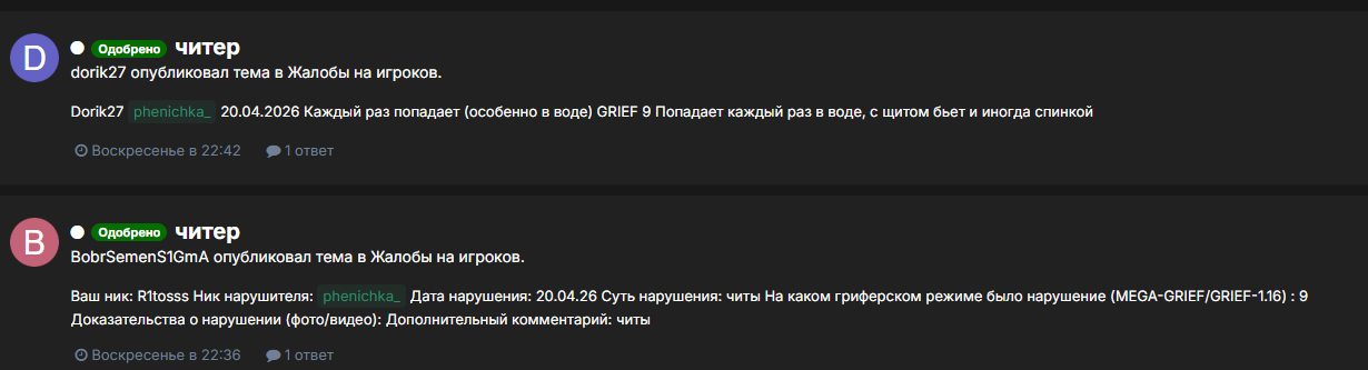 Что должен был сделать?(Администрация форума):Администратор форума должен был действовать корректно и в рамках установленных правил. Прежде всего, перед выдачей бана необходимо было убедиться в наличии доказательств нарушения со стороны игрока — например, проверить логи, записи чата или другие подтверждения. Если нарушение неочевидное, администратор должен был провести дополнительную проверку, а не принимать поспешное решение. У меня был пинг и это говорит то-что не надо банить без проверки!